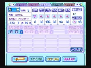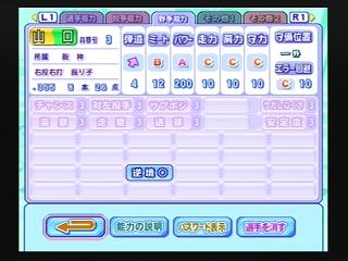 今年も評価が強豪で総合戦力もB。グラフもまったく同じだが、春の甲子園に出場したかどうかの違いがある。昨年地区大会敗退したにも関わらず春の甲子園に出場したチーム力と同じというのは、それだけ選手の能力が高いともとれるが、試合数が少ないぶん信頼度は低く、指示通りには動けないことが考えられる。投手陣は駒がそろっているので、彼らが失点を最小限に防いでくれることに期待したい。 同期の天才肌の松田に次いで能力が高かったので、1年の秋からレギュラー。しかし3試合連続無安打、地区大会2戦目にしてようやくタイムリーを含む2安打と結果が出た。春の甲子園でも2試合連続無安打となり、スタメンから外されることに。2年の夏はスタメン復帰するも初戦は無安打。3回戦ではタイムリーを含む3安打4盗塁と活躍したが、続く準々決勝では再び無安打に終わり、チームも敗退。能力の高さを買われ、秋から4番を任される。初戦は無安打も2回戦ではタイムリーを含む3安打、地区大会でも2試合でヒットを放ち、期待に応えた。春の甲子園では初戦で3四球、2回戦で2四球、ともに3盗塁ずつ決め、得点能力の高い後続の打者にチャンスメイク。打点は準々決勝の犠飛による1打点のみだったが、決勝までヒットを打ち続け、スタメンの中では一番高い打率を残した。 3年の夏も4番を任され、初戦で先制タイムリー、2戦目には2本の2ランと好調をキープ。準決勝では無安打に終わったが、それ以外ではすべてヒットを放ち、決勝でも2ランを放つなど、予選は3割3分3厘、3本塁打、7打点と中軸としてはまずまずの働きをみせた。甲子園では2試合連続複数安打、準々決勝では無安打ながらも犠飛で1打点、準決勝ではホームランを1本。決勝は無安打に終わり、甲子園での打率そのものは悪かったが、チームは優勝。能力、打順を考えると数字的にはパッとしないが、盗塁数22は同期の中で最多となった。 能力的には平凡レベルだったので1年の秋も控えだったが、地区大会2回戦で途中出場。このときはヒットは打てなかったが、春の甲子園では初戦で代打出場し2点タイムリー、決勝ではチームを勝利に導くサヨナラホームランと最高の結果を残す。2年になっても代打要員だったが、2回戦で同点犠飛、3回戦でタイムリーと勝負強さを発揮。秋からようやくレギュラーとなり、地区大会初戦では格上のチーム相手に勝利を決定付ける3ラン。春の甲子園では初戦から2試合連続犠飛、準々決勝もタイムリーと活躍。しかし準決勝では無安打、決勝は1安打放つもチームは敗退、準優勝に終わる。 3年の夏も6番に入り、初戦は2安打2四球だったが、2回戦では1四球の無安打。しかし3回戦、準決勝とソロを放つと、準決勝ではタイムリー1本と満塁弾、決勝では3ランと4試合連続本塁打を記録。予選は驚異的ともいえる打率6割、4本塁打、10打点と文句のつけようのない活躍。甲子園でも2回戦と準々決勝でソロを放つが、準決勝、決勝と無安打に終わる。それでもチームは勝ち続け、甲子園制覇。打率、本塁打、打点は同期の中で2番目に高い数字。 チーム史上初となる天才肌の捕手。1年の夏からベンチ入りし、準々決勝では代打で起用されタイムリーを記録。甲子園の決勝ではスタメン起用され、タイムリー1本を打っている。秋の都大会からレギュラー。2戦目に先制を含むタイムリー2本を打ったが、地区大会では2試合連続無安打に終わる。春の甲子園では初戦で2本のタイムリーなど4打点をあげる活躍。以降もほどほどにヒットを打ち、3割以上の打率を残す。2年の夏の予選では初戦で同点打、勝ち越しソロなど3安打、2戦目も先制を含む2本のタイムリーと活躍したが、準々決勝では無安打に終わりチームも敗退。秋から5番に入り、4試合連続ヒット。春の甲子園では5試合全てで打点を挙げ、ホームランも3本放つ活躍を見せたが、チームは準優勝に終わる。 3年の夏は打線のつながりを考慮し3番を任される。準々決勝ではノーヒットだったが、全試合で打点を挙げ、予選は4割5分、2本塁打、11打点と期待通りの働きをみせる。甲子園でも決勝はノーヒットだったが、準決勝まで毎試合ヒット、3回戦と準々決勝では2試合連続弾も放ち、最後の夏を優勝で終えた。通算の打率、本塁打、打点は同期の中で最多。とくに打点はチーム史上でもトップの数字、本塁打数も3番目に多い数字となった。また、能力値がオールAというのもチームにとっては初である。 |